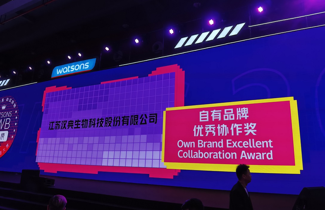 2021年汉典生物在屈臣氏健康美丽大赏中斩获“自有品牌优秀协作奖”,这是汉典生物连续四年在屈臣氏HWB大赏中获得大奖。自2002年起汉典生物就成为屈臣氏的优秀供应商,至今已连续合作19年,在此期间汉典生物荣获屈臣氏不同奖项十余个。